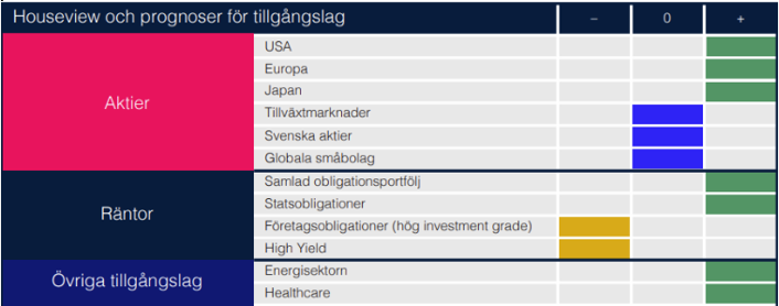 Vi bedömer att avtagande fokus på tullar och privata inkomster bör bidra till den globala tillväxten under 2026. Goldman Sachs Global Investment Research räknar med en tillväxt på 2,5 procent i USA, 1,2 procent i euroområdet och 4,8 procent i Kina. I USA väntas tillväxten accelerera under det första halvåret, understödd av gynnsamma finansiella förhållanden och finanspolitisk stimulans.