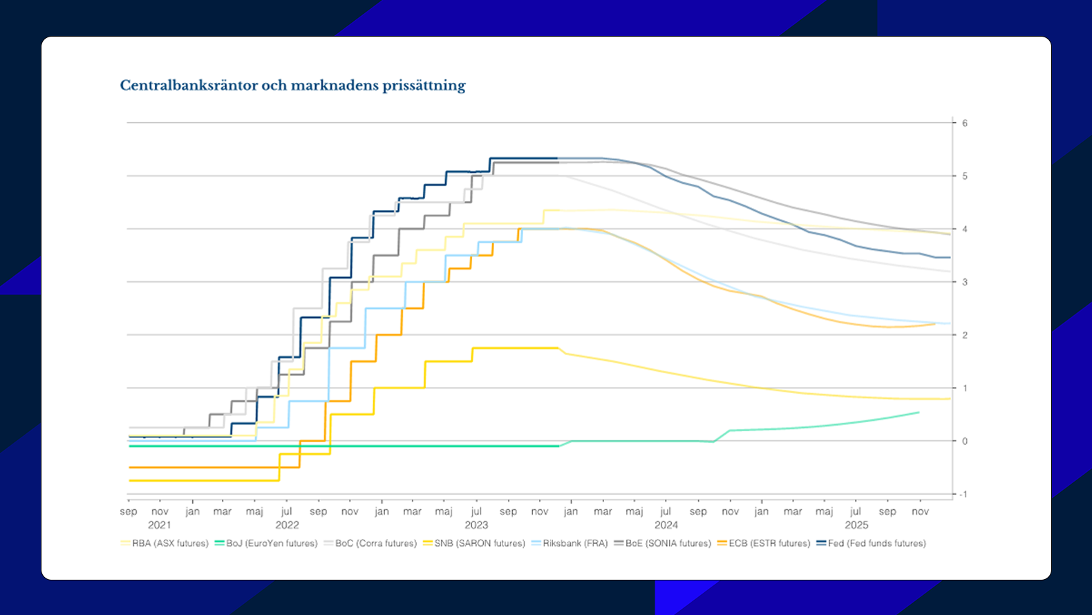 Den senaste tiden har de finansiella marknaderna präglats av förväntningar om att räntetoppen är nära och att lättnader i räntenivåerna väntas under nästkommande år från de dominerande utländska centralbankerna.