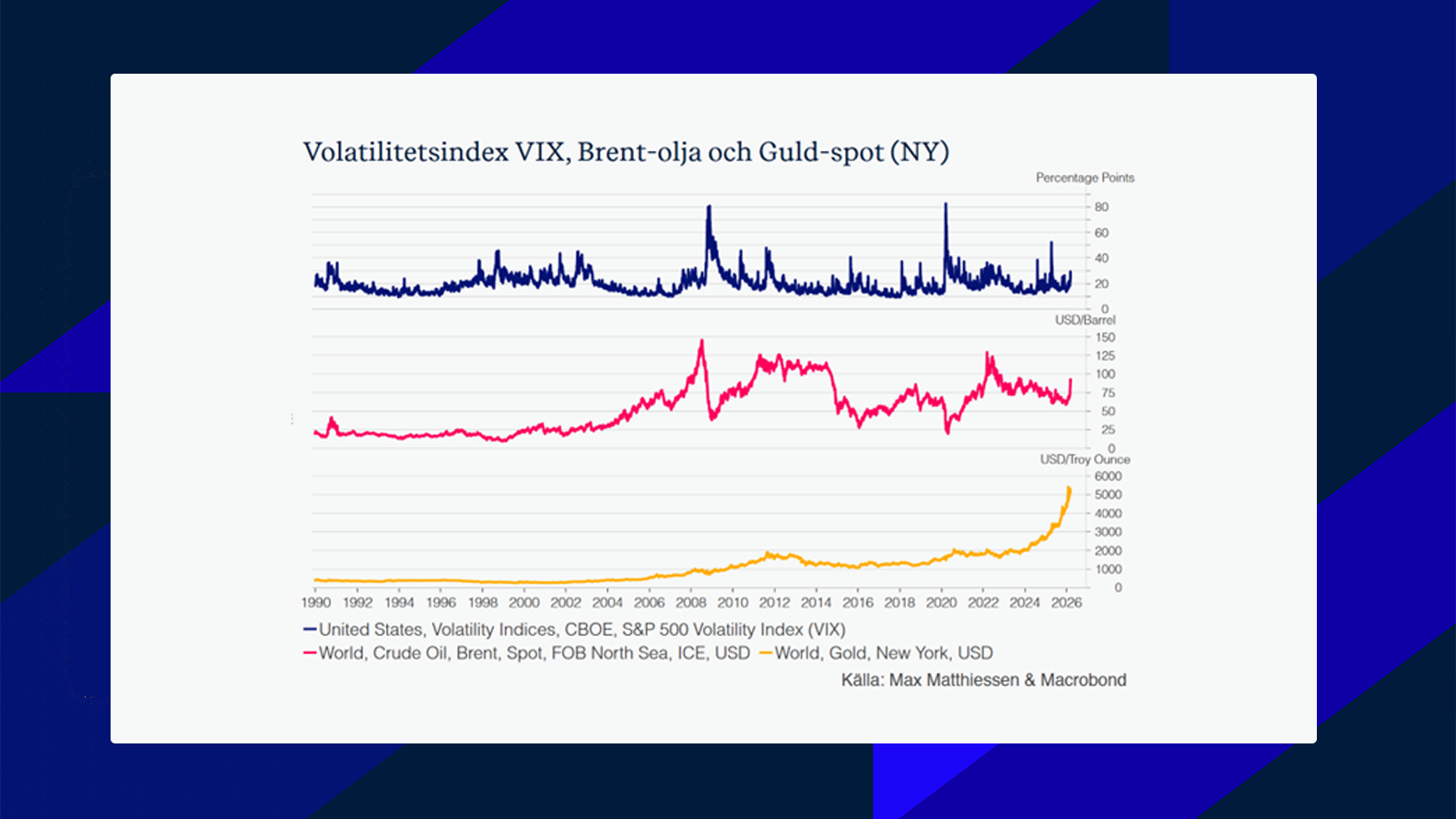 Samtidigt fanns det motkrafter under veckan. Kina visade starkare export än väntat och industrin höll uppe bättre än många befarat. Japans BNP reviderades upp något för fjärde kvartalet. I USA fortsatte tjänstesektorn att visa styrka och detaljhandeln höll emot relativt väl. Det innebär att världsekonomin inte går in i denna fas från ett entydigt svagt läge. Men just därför blir också slutsatsen mer komplex: tillväxten är inte tillräckligt svag för att omedelbart tvinga fram räntesänkningar, samtidigt som energiprischocken försvårar inflationsbilden. Det är denna kombination som gör marknadsläget så känsligt.