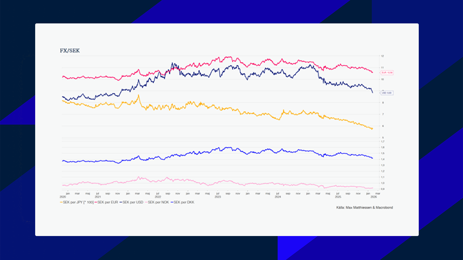 Valutamarknaden präglades av en tydlig dollarförsvagning. Dollarn föll till den svagaste nivån sedan 2022, vilket enligt bedömare speglar strukturella motvindar som minskat förtroende för USA:s handelspolitik, ökad politisk inblandning i penningpolitiken och en försämrad finanspolitisk trovärdighet. Mot slutet av veckan stärktes dollarn tillfälligt efter spekulationer om att Kevin Warsh kan bli ny Fed-chef, vilket i sin tur utlöste kraftiga nedgångar i guld- och silverpriserna efter en mycket stark inledning på året.